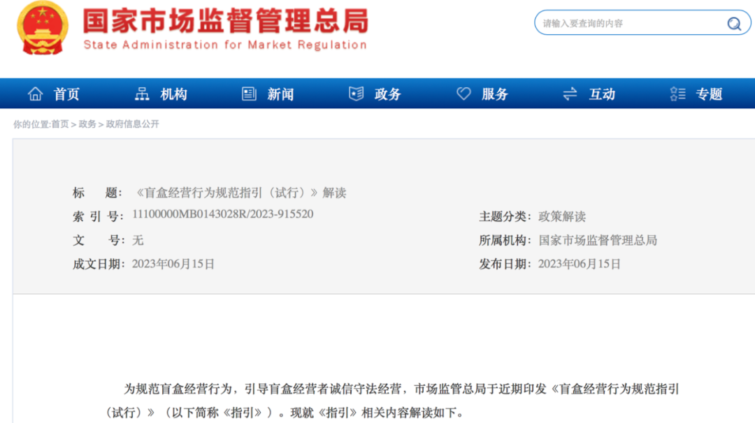 早在去年8月,市监总局已发布公开征求《盲盒经营活动规范指引(试行)(征求意见稿)》意见的通知,该意见稿拟规定: